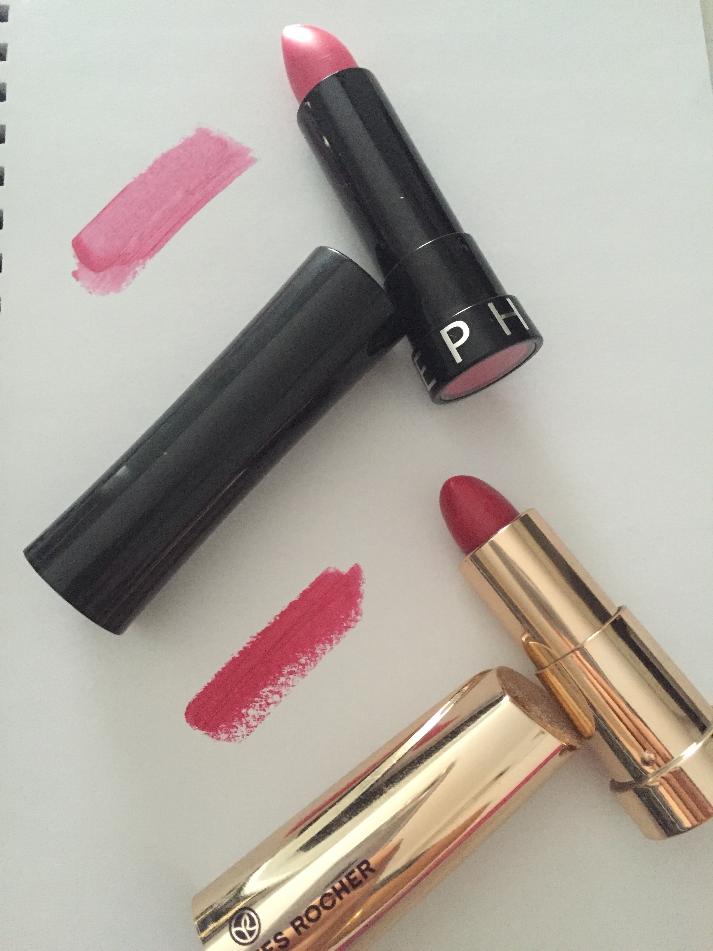 – le Grand Rouge de Yves Rocher n°13 rose somptueux, un autre rose plus soutenu