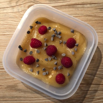 Par-dessus je mets au choix un peu de compote, yaourt ou fromage blanc, selon mes envies du moment.